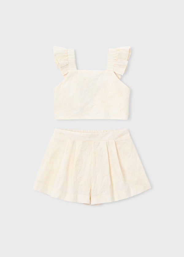 Conjunto bermuda y top volantes ceremonia niña Ref. 3235-088