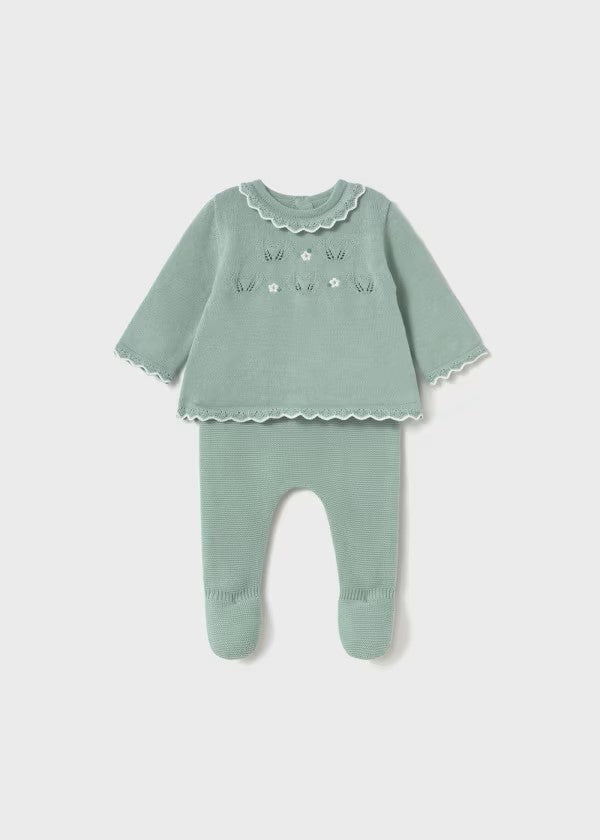 Conjunto polaina y jersey tricot recién nacida Ref. 1587-096