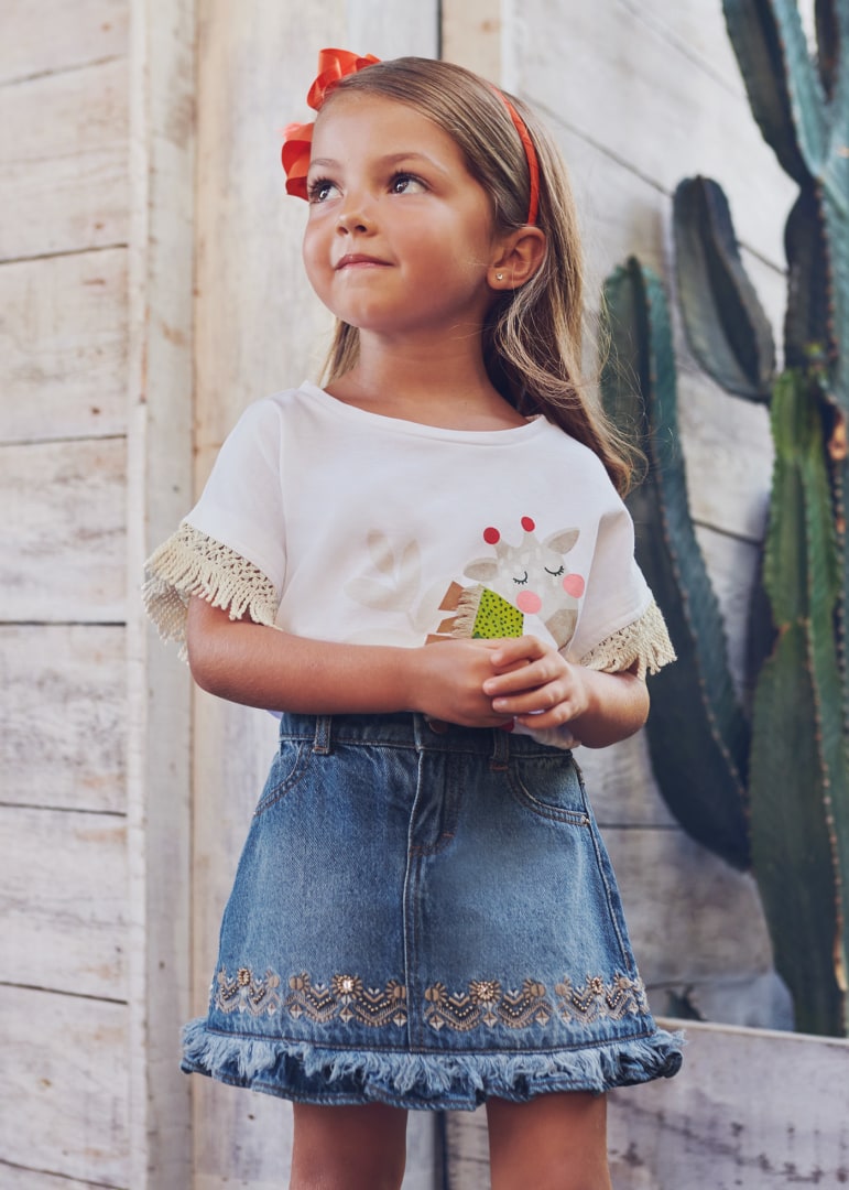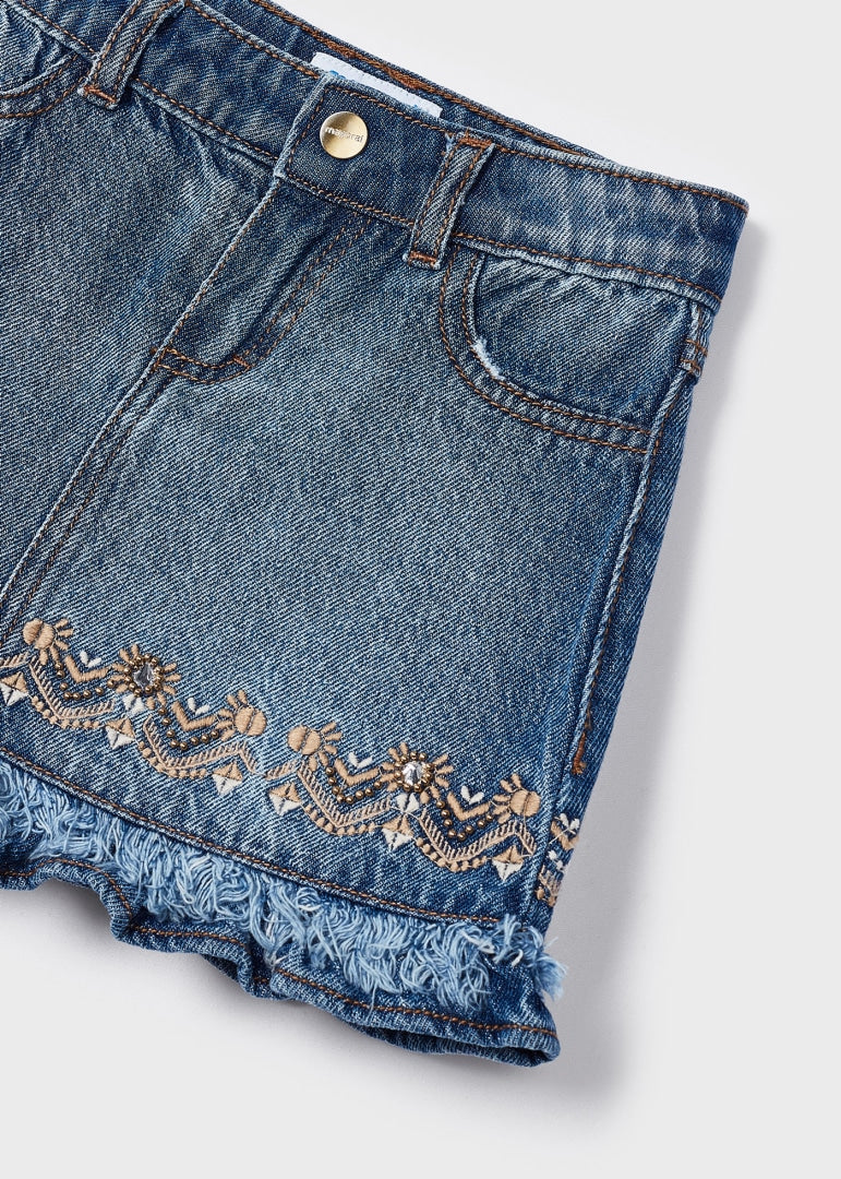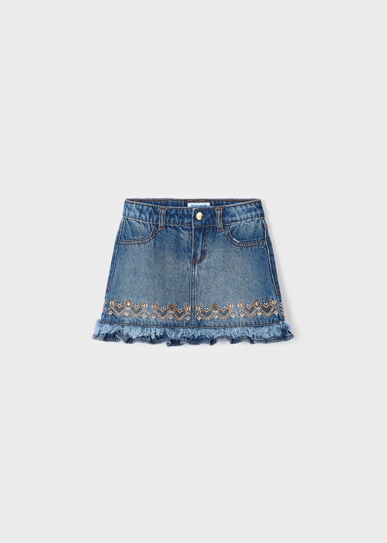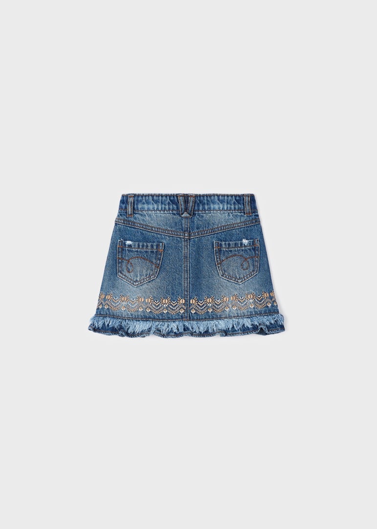 Falda de mezclilla con motivo bordado de algodón para niña Art. 23-03904-067