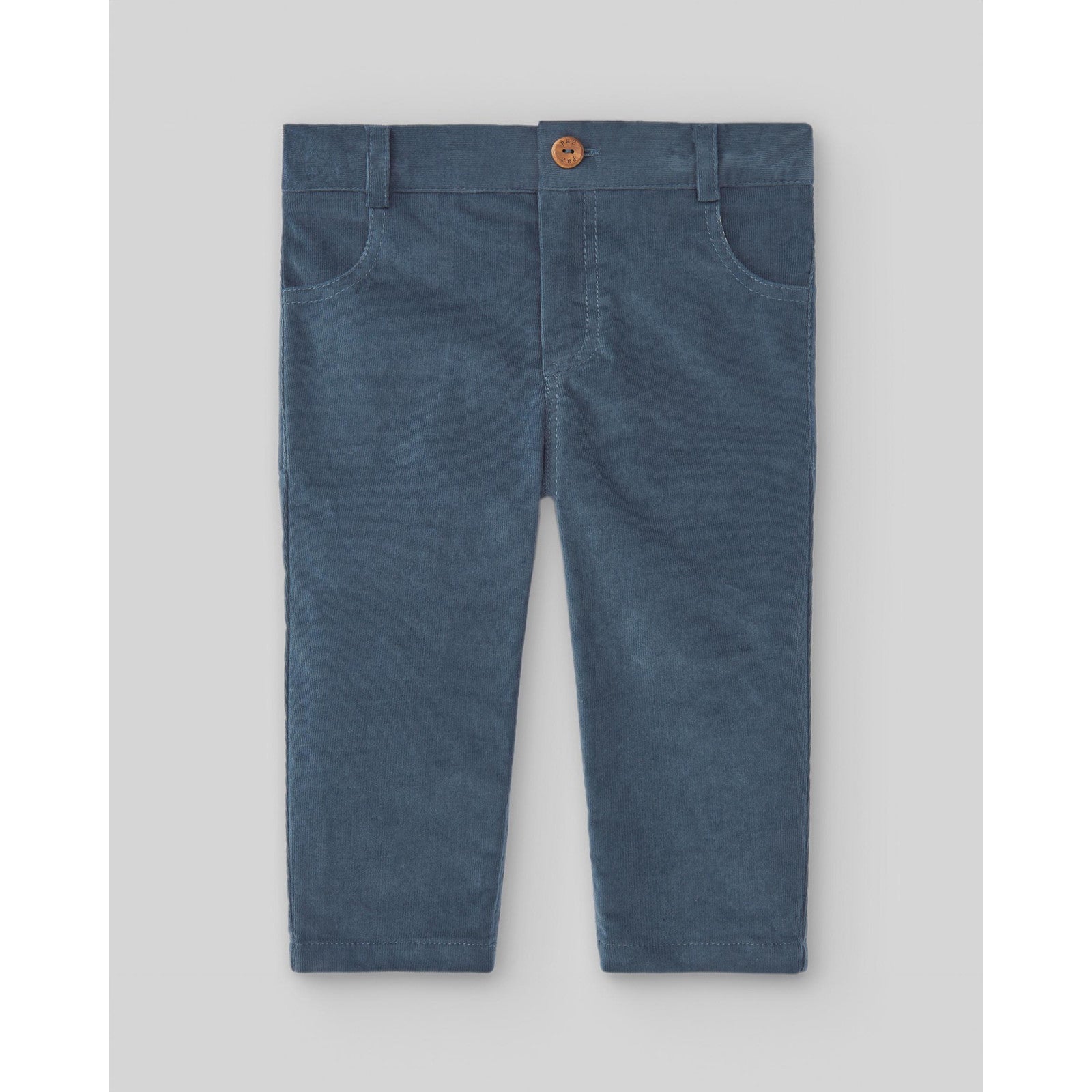Pantalón de tejido pana unisex largo, diseñado desde los 3 meses hasta los 6 años. Cinturilla ajustable, trabillas y cierre botón frontal. Bolsillos delanteros y traseros.