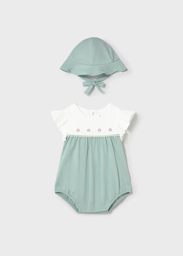 Pelele florecitas con gorro recién nacida Ref. 1602-062