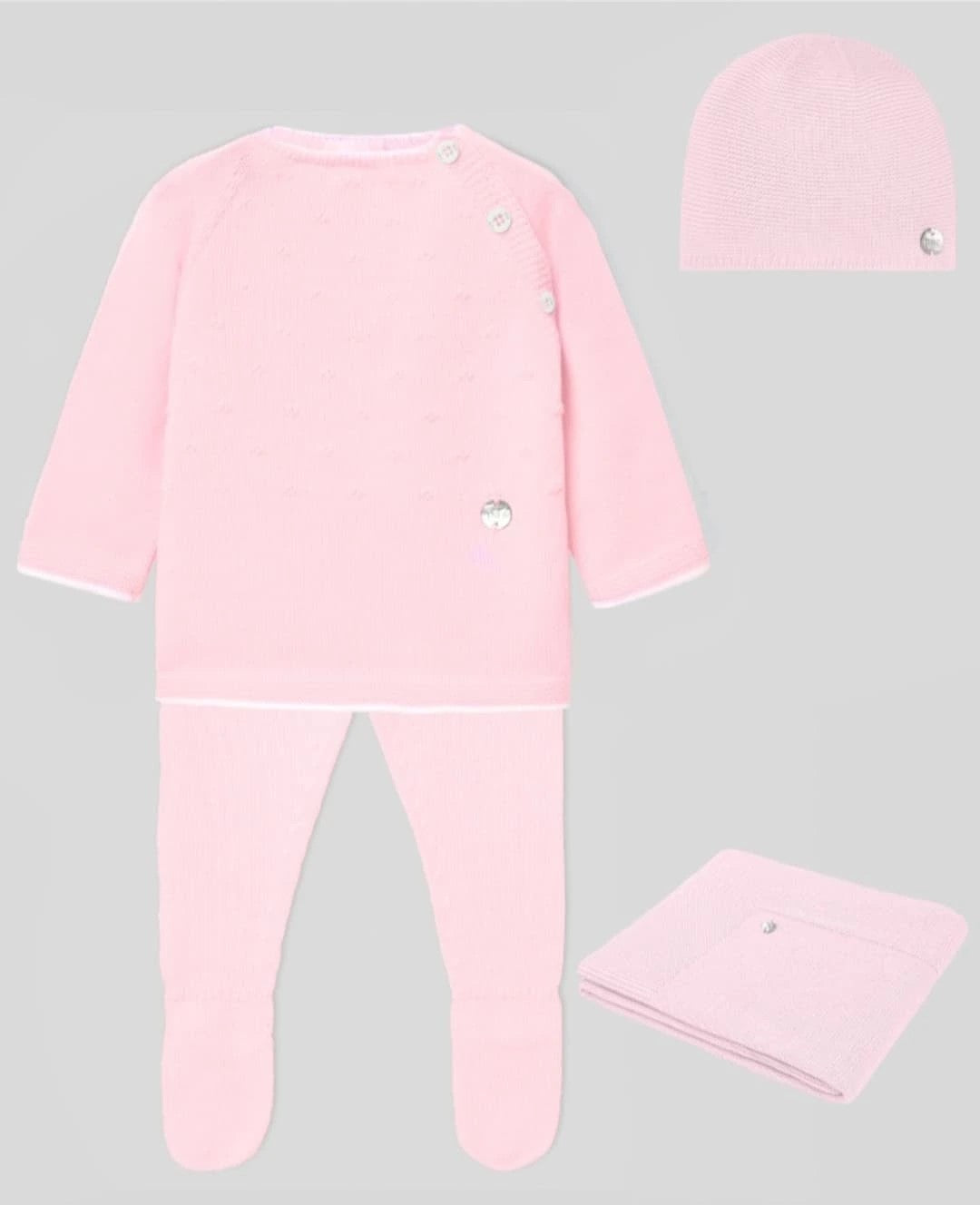 Recien nacido. PAZ RODRIGUEZ Set de regalo ref. 122277-37 . POLAINA, SUETER, GORRO, Y MANTITA