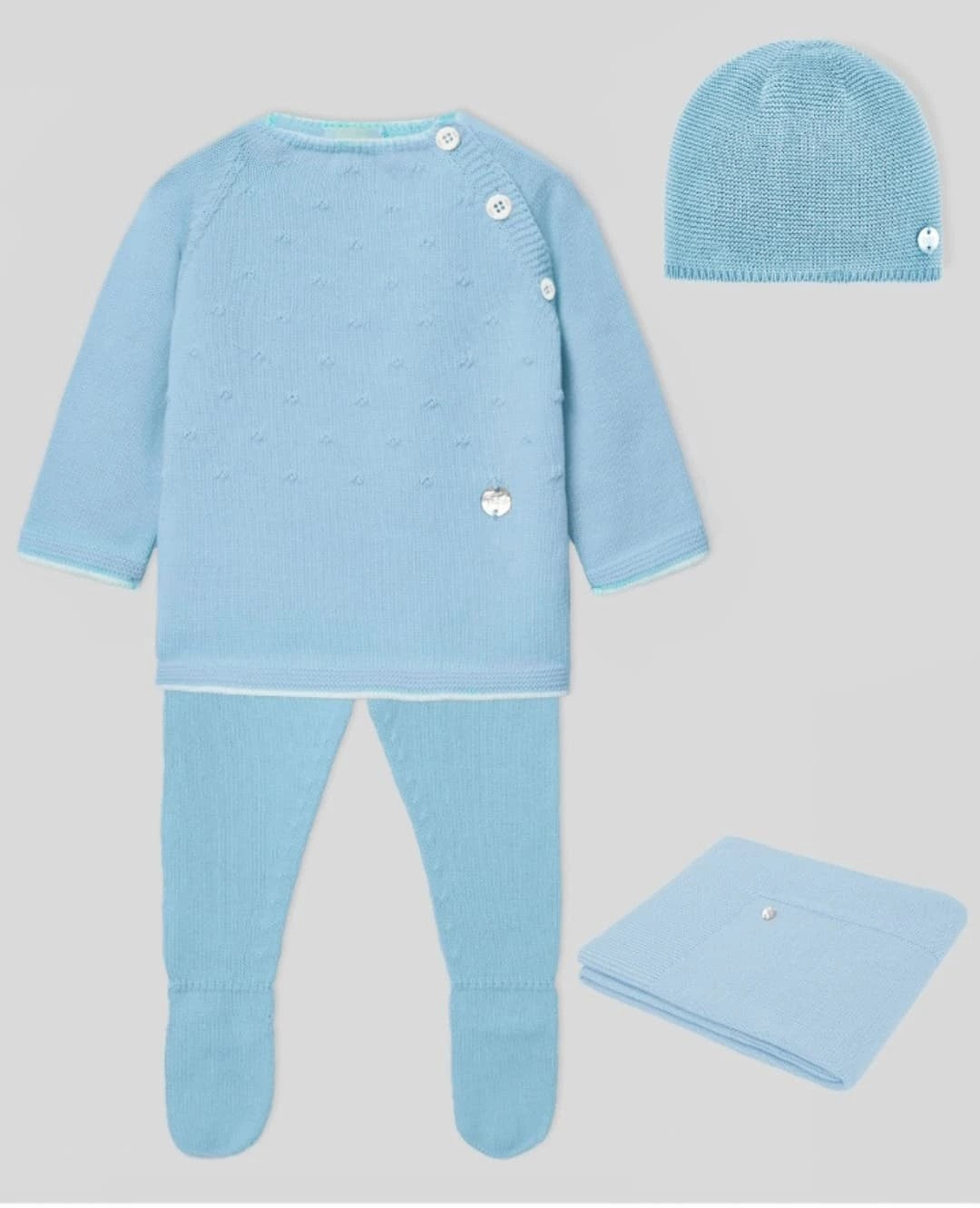 Recien nacido. PAZ RODRIGUEZ Set de regalo ref. 122277-86 . POLAINA, SUETER, GORRO, Y MANTITA