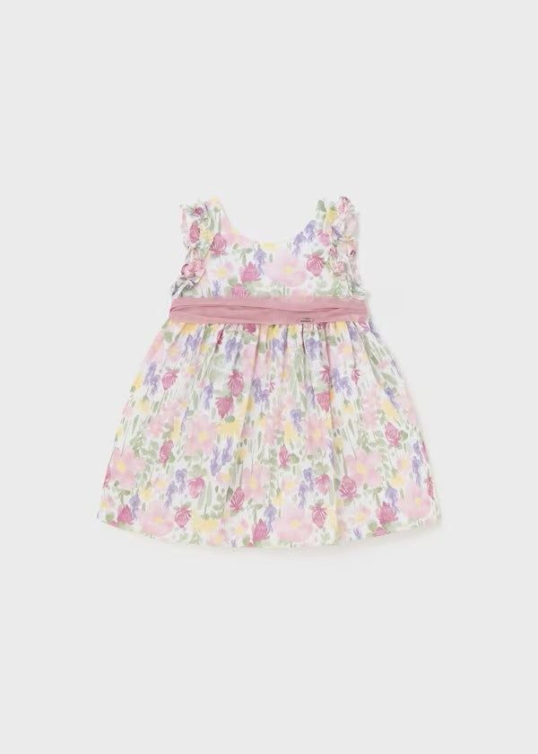 Vestido flores con fajín tul bebé Ref. 1902-047